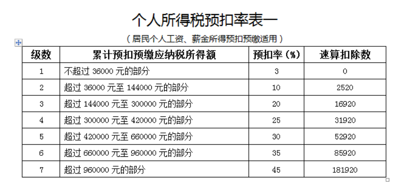 參照工資薪金個(gè)人所得稅稅率表: